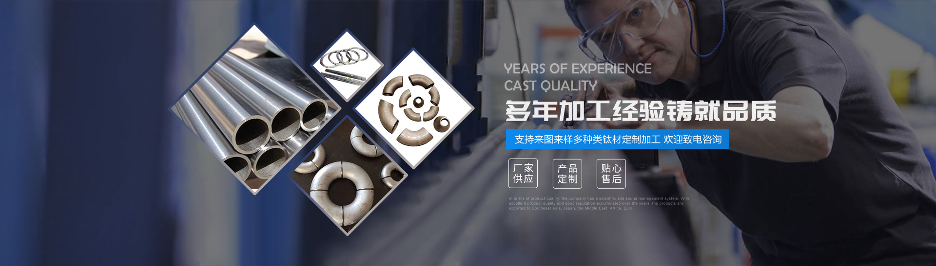 本公司的主營產品鈦制品有,鈦管,鈦棒,鈦彎頭,鈦法蘭,鈦管件,鈦標準件,鈦槽,鈦設備,鈦沖壓彎頭等。所生產各種規格的鈦制品主要運用于化工、電鍍、石油、電子、環保、海洋等領域"以質量求生存,靠服務求發展“為宗旨,客戶的滿意是我們的追求,歡迎各界用戶來函來電,傳真,洽談貿易。